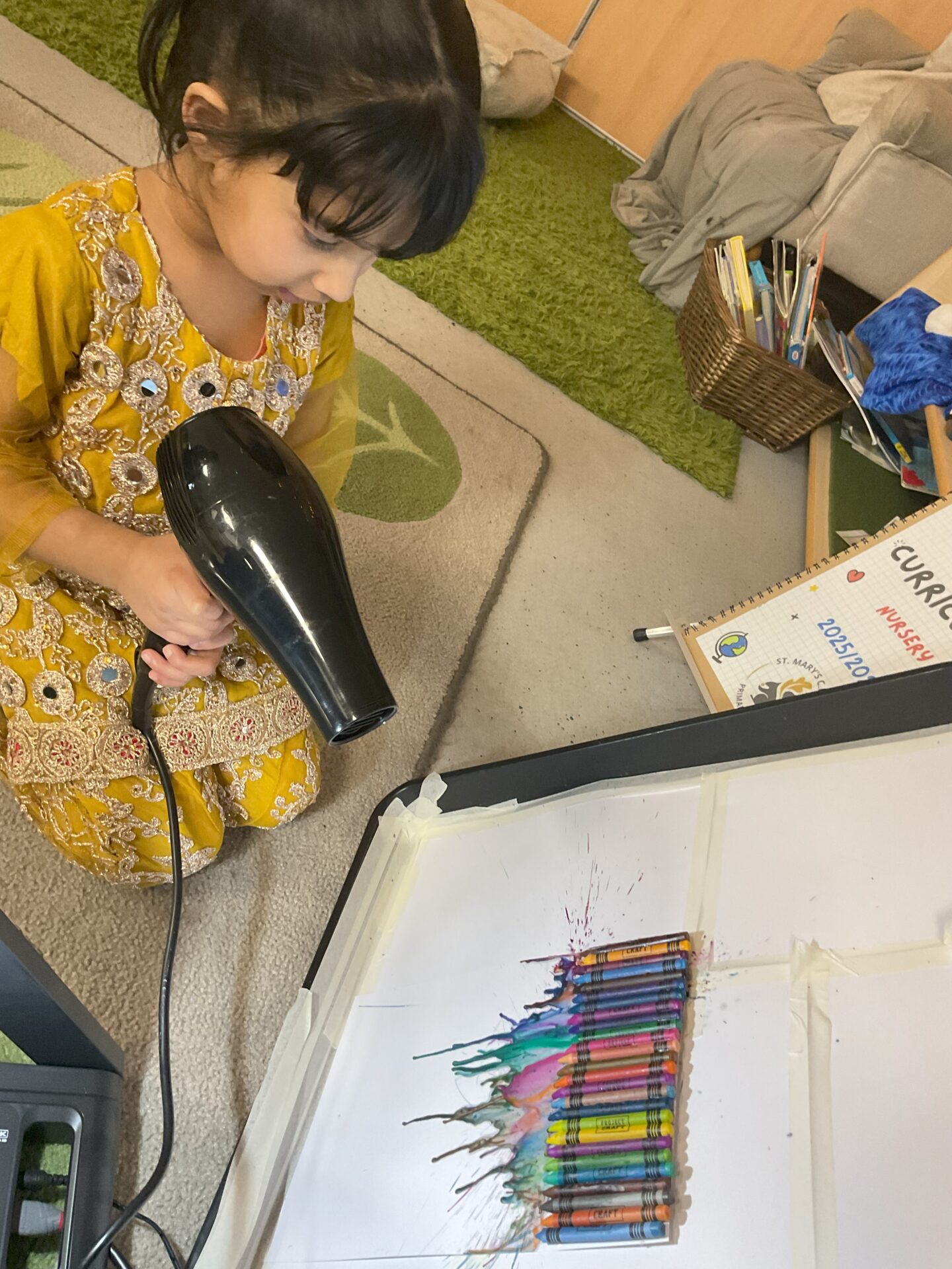 We develop our creativity through painting, music, imaginative play, and experimenting with a range of materials.